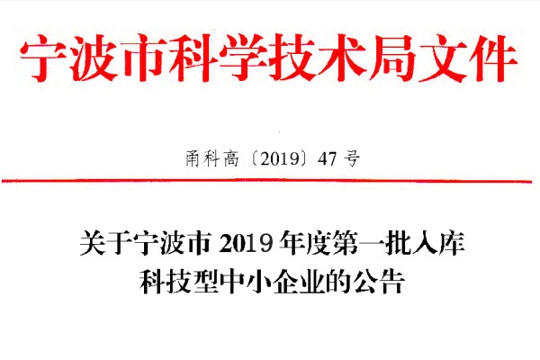 入庫科技型中小企業(甬科高[2018]26號文件);同時評上鄞州區企業工程(技術)中心;