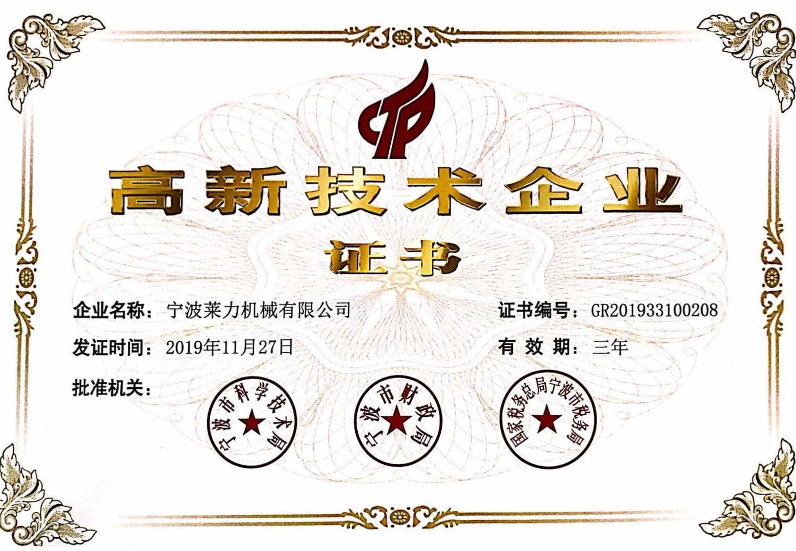 評上寧波市高新技術企業;(甬高企認領[2020]1號);